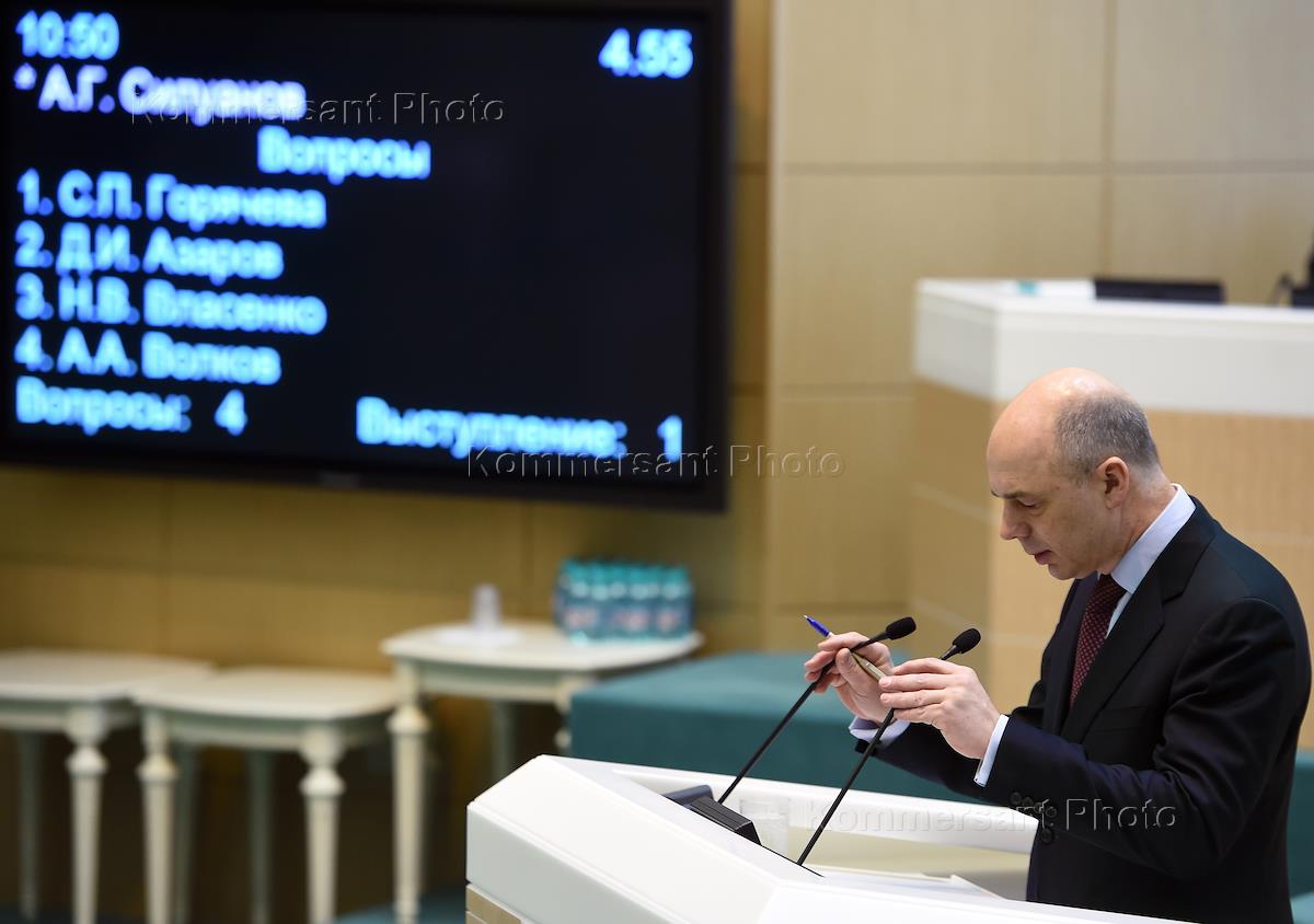 Министр финансов России Антон Силуанов во время заседания Совета Федерации России.