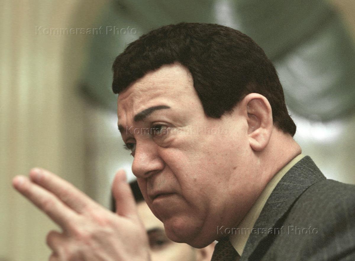 Vice-chairman of the State Duma Culture and Tourism Committee Iosif Kobzon is interviewed at the news conference healdined 'Ligislative Bill on Concert and Tour Activities Introduced into the State Duma'. The news conference was held in the Central Journalist House Marble Hall.