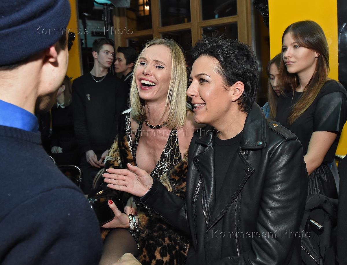 Директор Центра документального кино (ЦДК) Софья Гудкова (слева) и председатель совета директоров ИД "Forward Media Group" Полина Юмашева (справа) на показе коллекции Alexander Terekhov FW2015/16 дизайнера Александра Терехова в Noor Bar.
