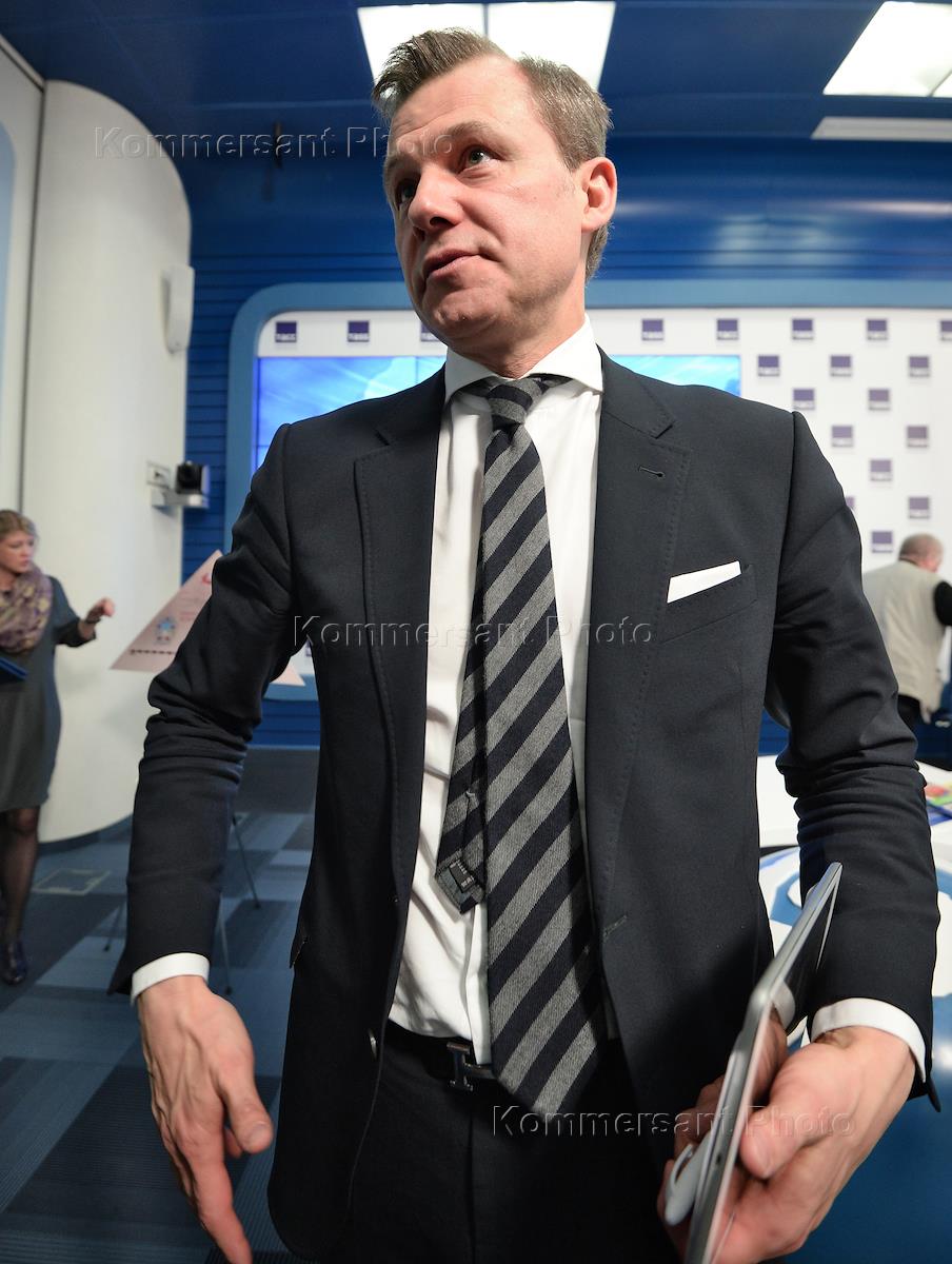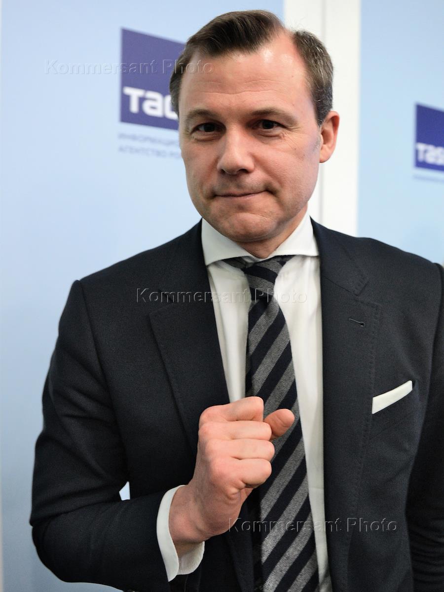 Генеральный директор ФГУП "Почта России" Дмитрий Страшнов на пресс-конференции, посвященной мероприятиям Федерального агентства связи России (Россвязь) приуроченных к годовщине Победы в Великой Отечественной войны (ВОв). Пресс-конференция прошла информационном агентстве ТАСС.
