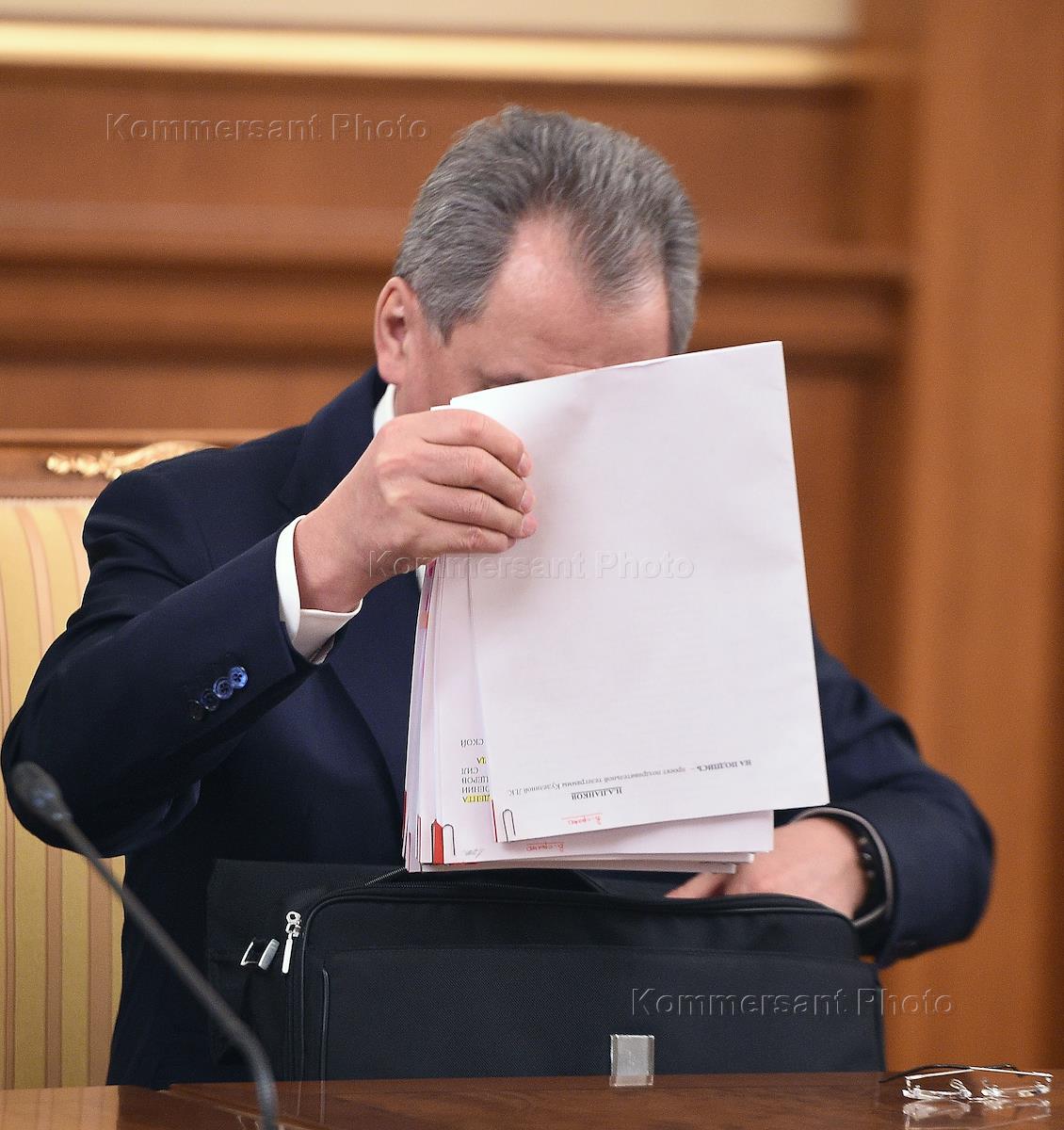 Министр обороны России Сергей Шойгу перед началом заседания правительства России.