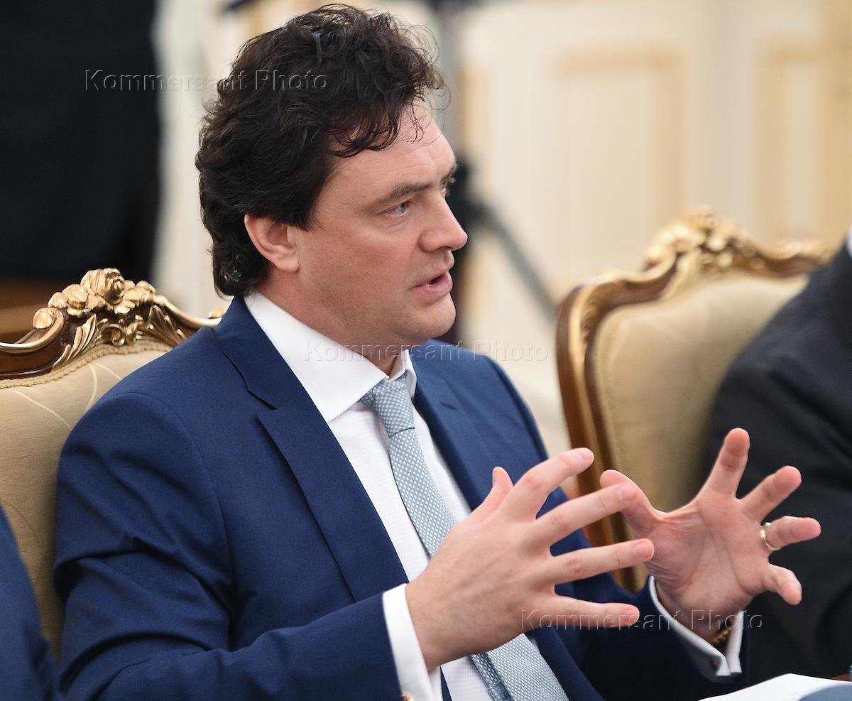 Russian minister of economic development Alexey Ulyukaev (left) and President of En + Group Oleg Deripaska (right) during the Vnesheconombank council session.