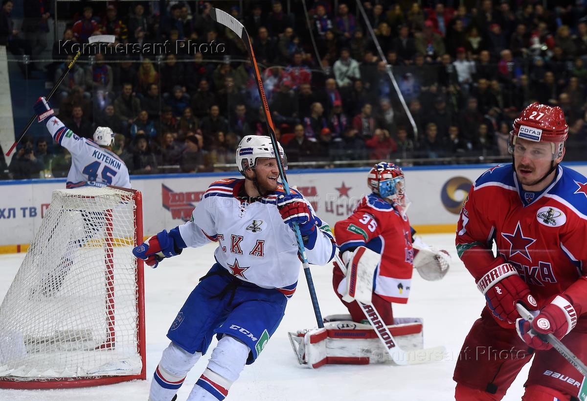 Continental Hockey League. Semi-Final. play off of Gagarin Cup. The match between teams CSKA (Moscow) and SKA (Saint-Petersburg) held in the CSKA Ice Palace.