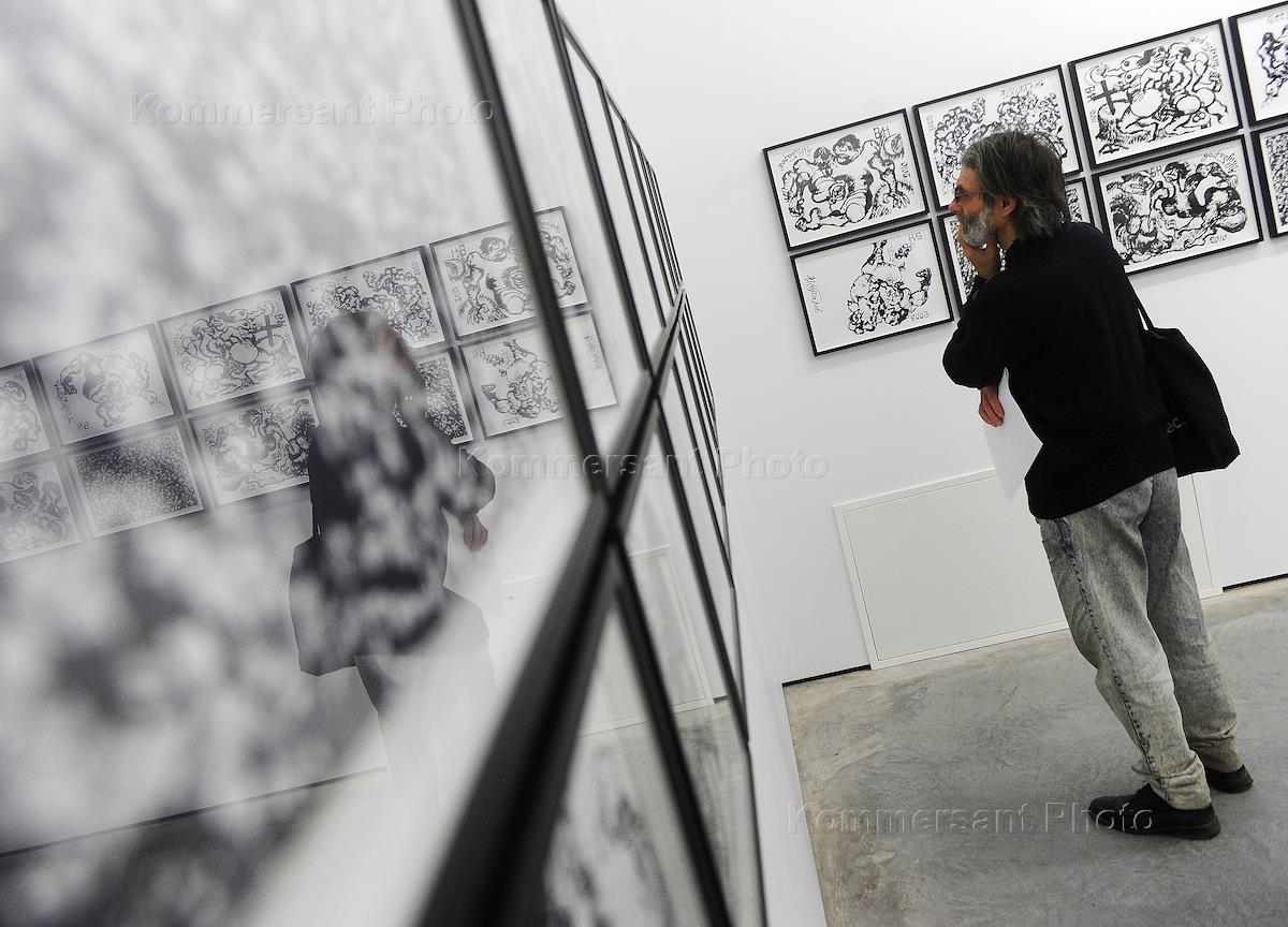 Посетитель на церемонии открытие выставки художника Евгения Чубарова в галерее Гари Татинцяна.