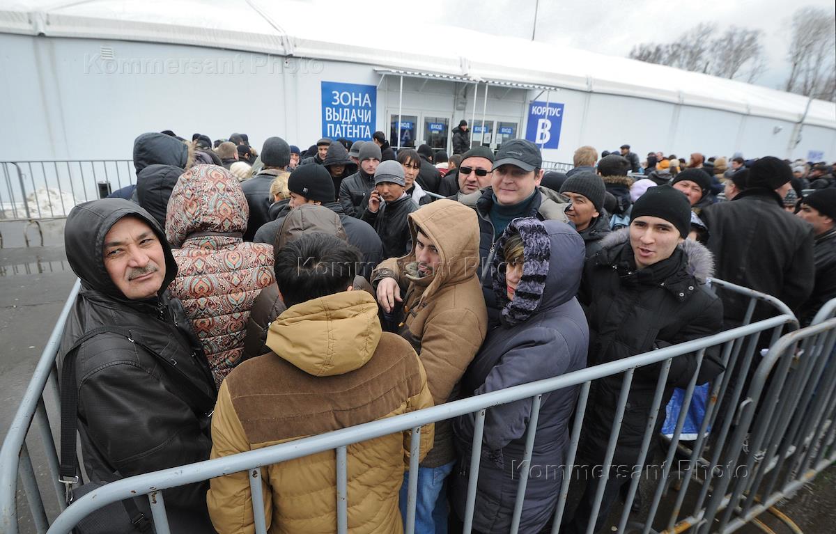 Жанровая фотография. Работа Многофункционального миграционного центра города Москвы. Очередь в зону прием документов.