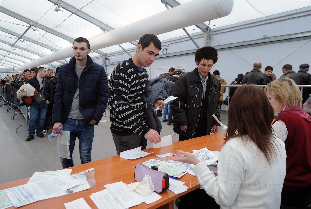 The scenic photography. Working of multi-function migration centre of Moscow city.