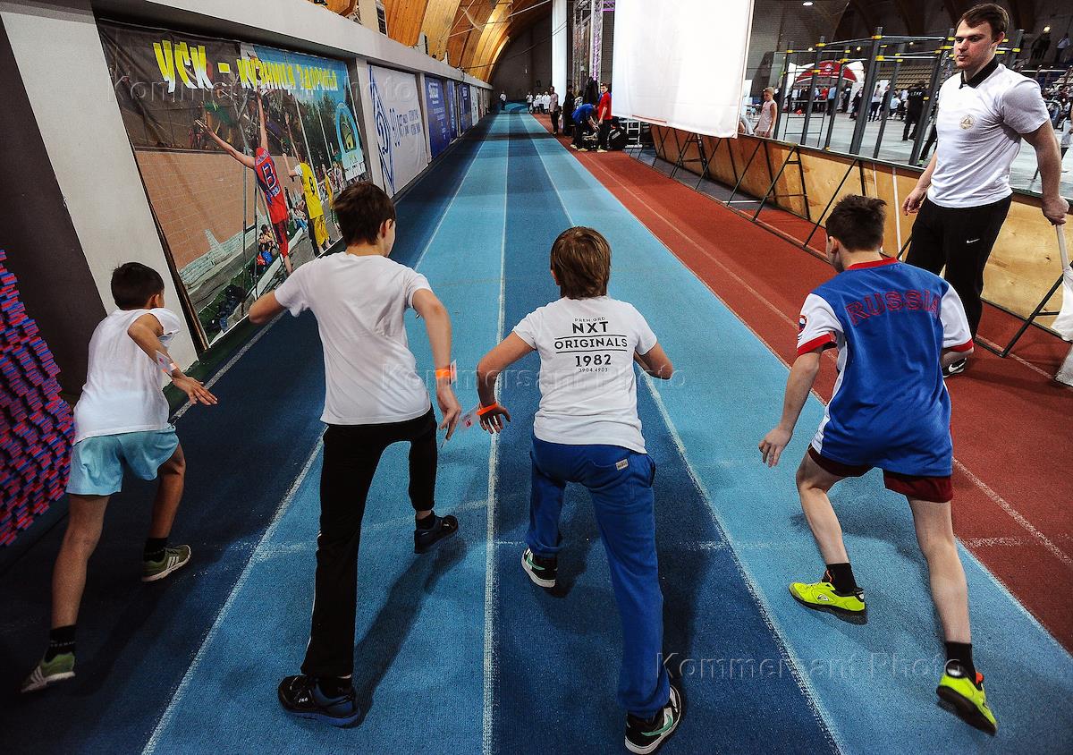 Single day of GTO (Ready for Labour and Defense) standards testing among students of secondary schools of all municipal districts of Moscow region. Testing held at 'Podmoskovye' Universal Sports Complex.