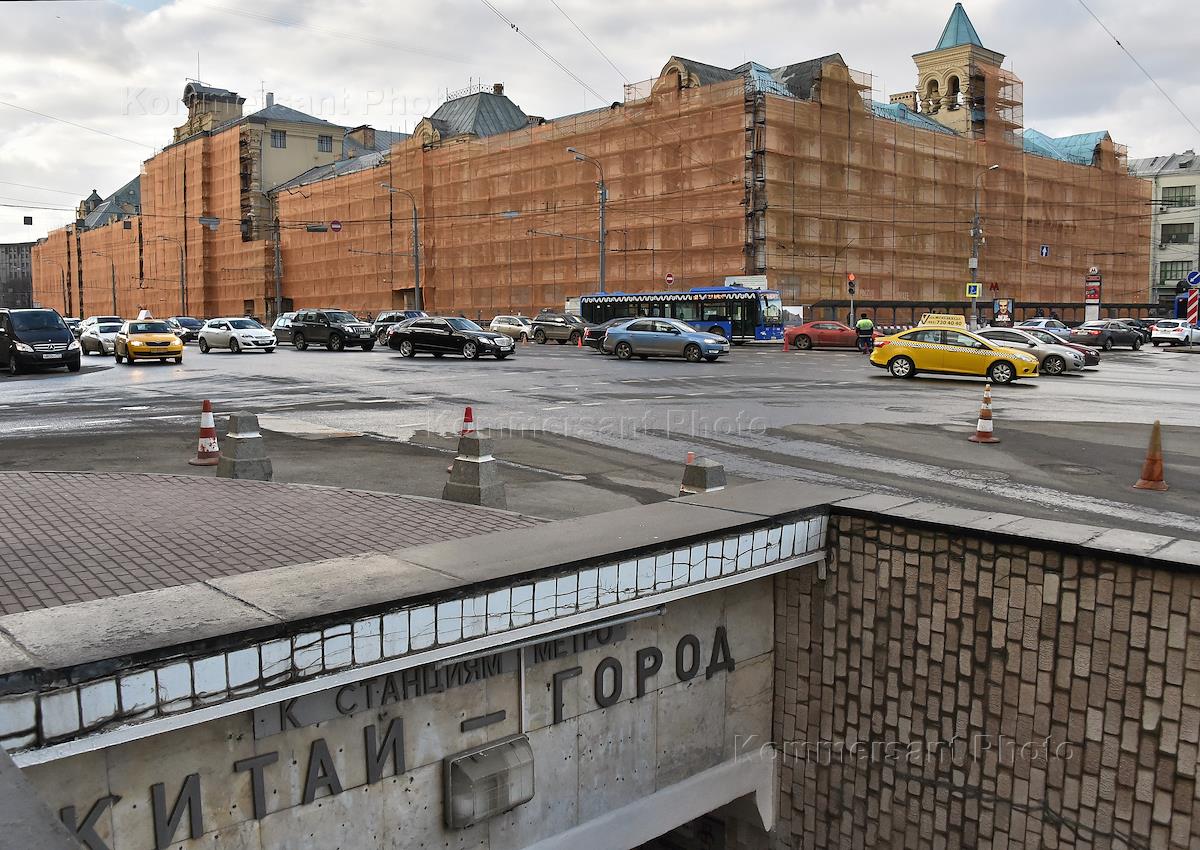 Виды Москвы. Здание Политехнического музея в строительных лесах во время реконструкции.