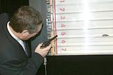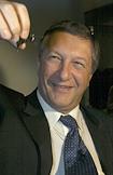 Leader of the Russian Economic Liberty Party (PES) Konstantin Borovoy fires the start-shot at the cockroach races held in the Mirage Club.