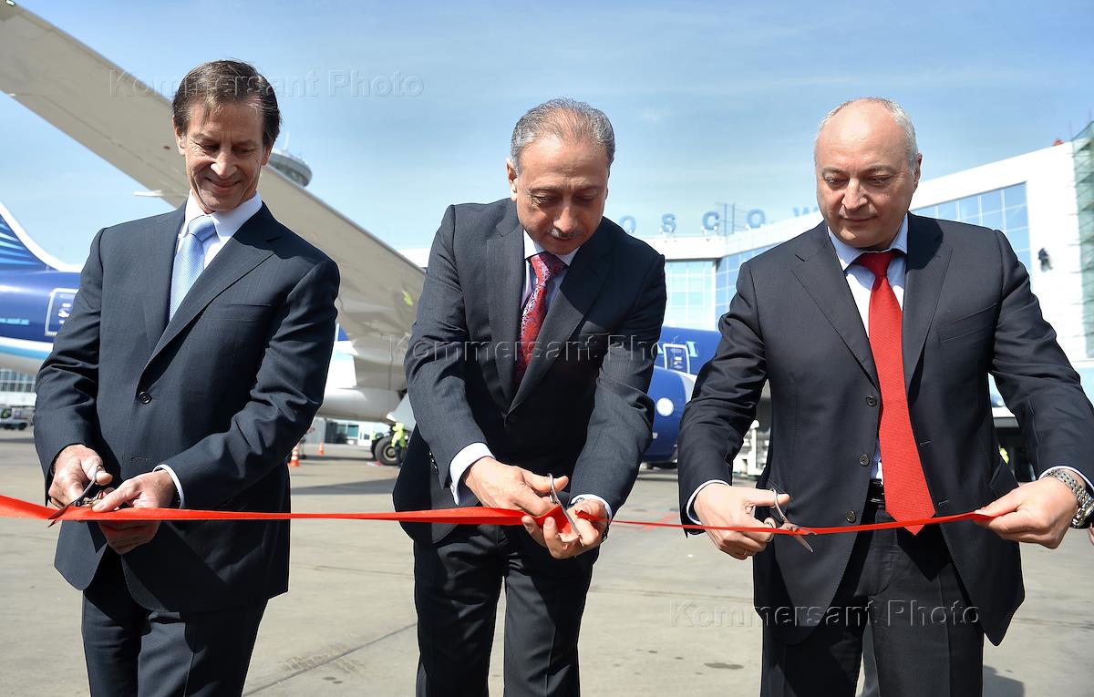 Церемония открытия авиасообщения по направлению Москва - Баку на новейших самолетах Boeing 787 Dreamliner авиакомпании "Азербайджан" состоялась в аэропорту "Домодедово".
