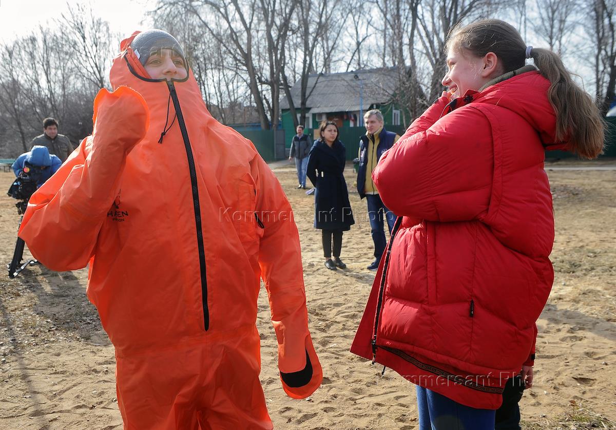 Жанровая фотография. Участники VIII российской молодежной экспедиции "На лыжах – к Северному полюсу!" во время тренировки. Корреспондент Полина Никольская (справа).