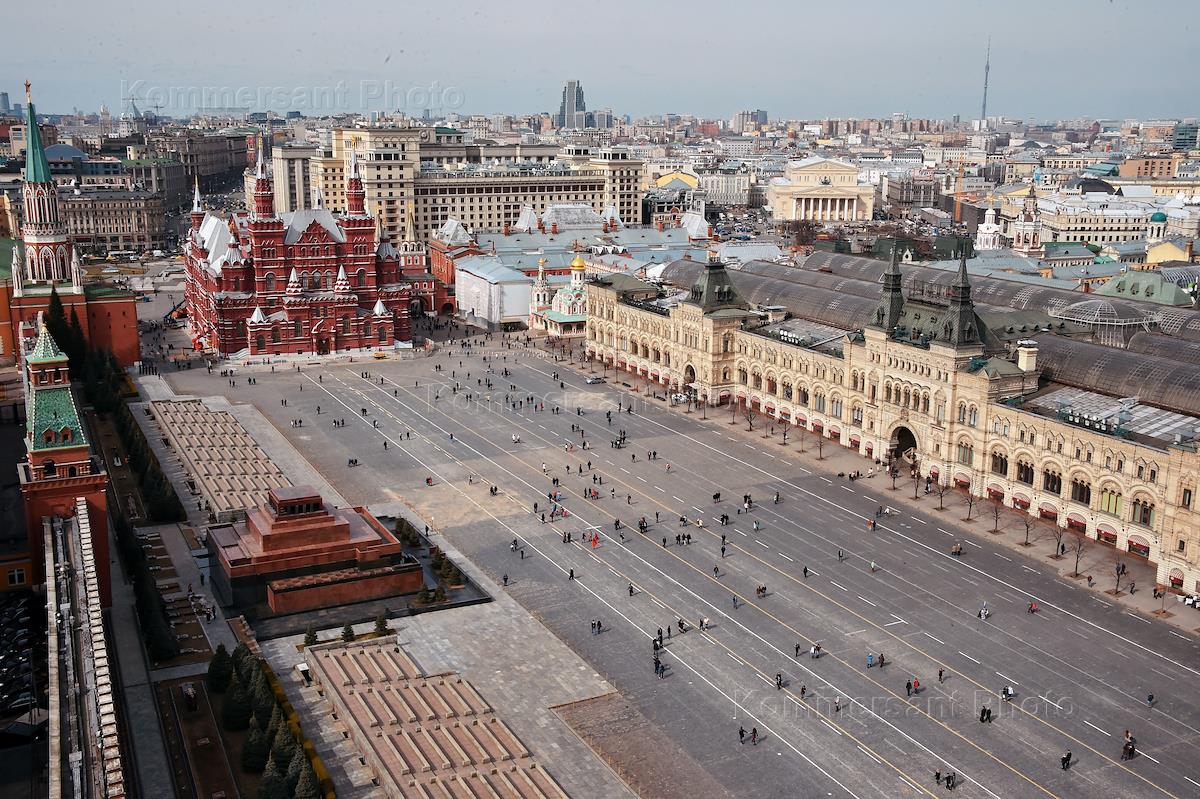 Жанровая фотография. Виды Москвы со строительных лесов Спасской башни Кремля. Красная площадь. Здание ГУМа и Средние торговые ряды.