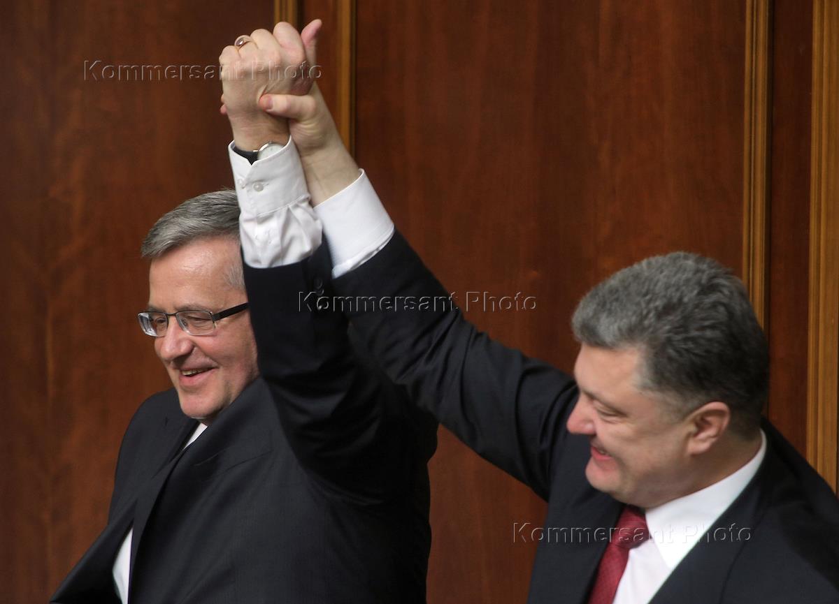 Президент Польши Бронислав Коморовский (слева) и президент Украины Петр Порошенко (справа) на заседании Верховной рады Украины.