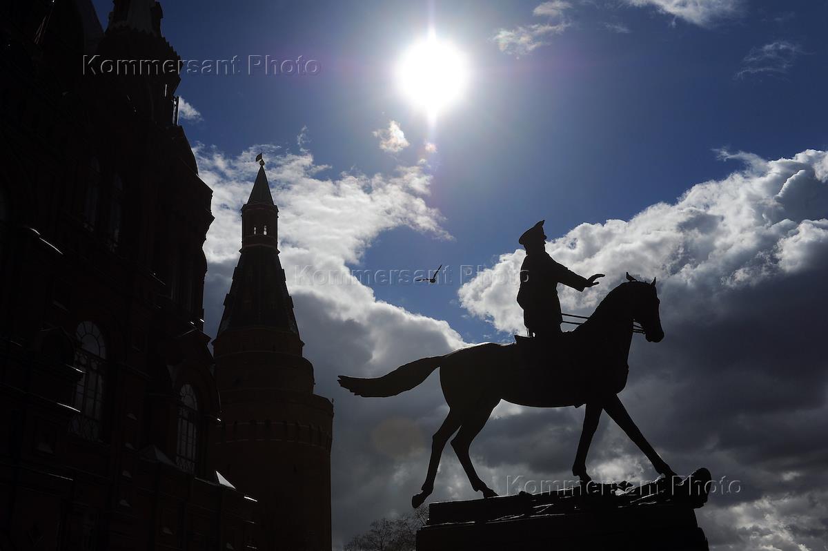 Виды Москвы. Памятник маршалу Георгию Жуков на Манежной площади.