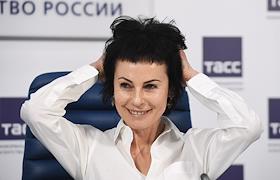 Директор "Театра Романа Виктюка" и театра "На Таганке" Ирина Апексимова во время пресс-конференции в информационном агентстве ТАСС.
