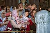 Крестный ход, пасхальная заутреня и Божественная литургия в кафедральном соборном Храме Христа Спасителя. Верующие на праздничнм пасхальном богослужении в храме Христа Спасителя.