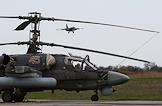 Жанровая фотография. Боевые тренировки авиационных подразделений. В тренировках на земле и боевых вылетах, со стрельбой из бортового оружия, пуском ракет и бомбометанием на полигоне ЮВО, расположенном в Краснодарском крае совместно приняли участие экипажи штурмовиков Су-25СМ "Грач", истребителей Миг-27, Миг-29 и Су-34, многоцелевых всепогодных боевых вертолетов Ка-52 "Аллигатор", ударных вертолетов Ми-28Н "Ночной охотник", Ми-24П и Ми-35 "Крокодил" и транспортно-штурмовых вертолетов Ми-8АМТШ "Терминатор".