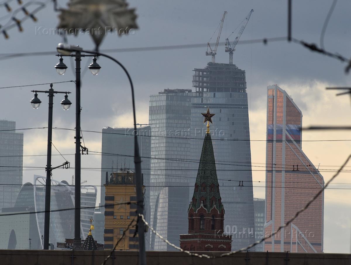 Виды Москвы. Башня Московского Кремля и Московский международный деловой центр "Москва-Сити".