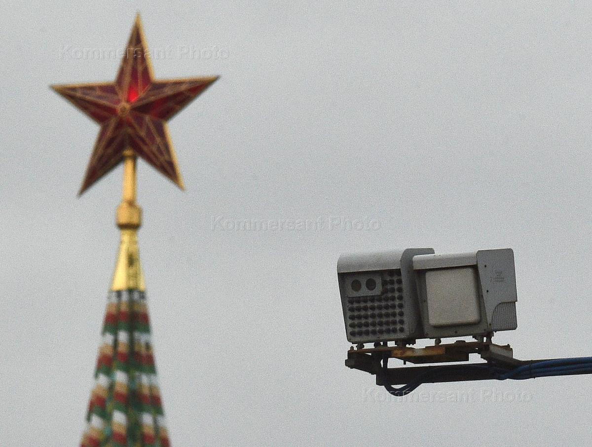 Виды Москвы. Спасская башня Московского Кремля и камера фото- и видео фиксации нарушений правил дорожного движения.