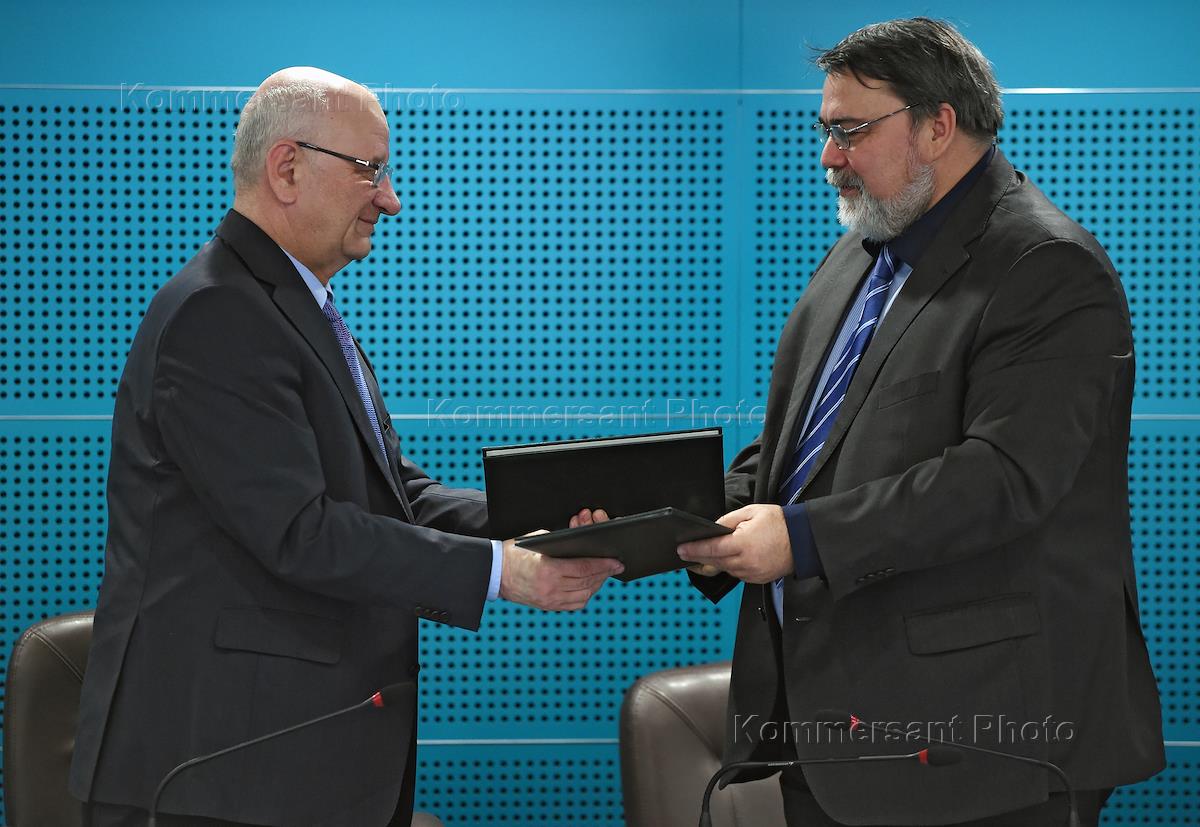 Губернатор Оренбургской области Юрий Берг (слева) и руководитель Федеральной антимонопольной службы (ФАС) России Игорь Артемьев (справа) во время церемонии подписания соглашения о взаимодействии между ФАС России и правительством Оренбургской области. Церемония прошла в ФАС России.