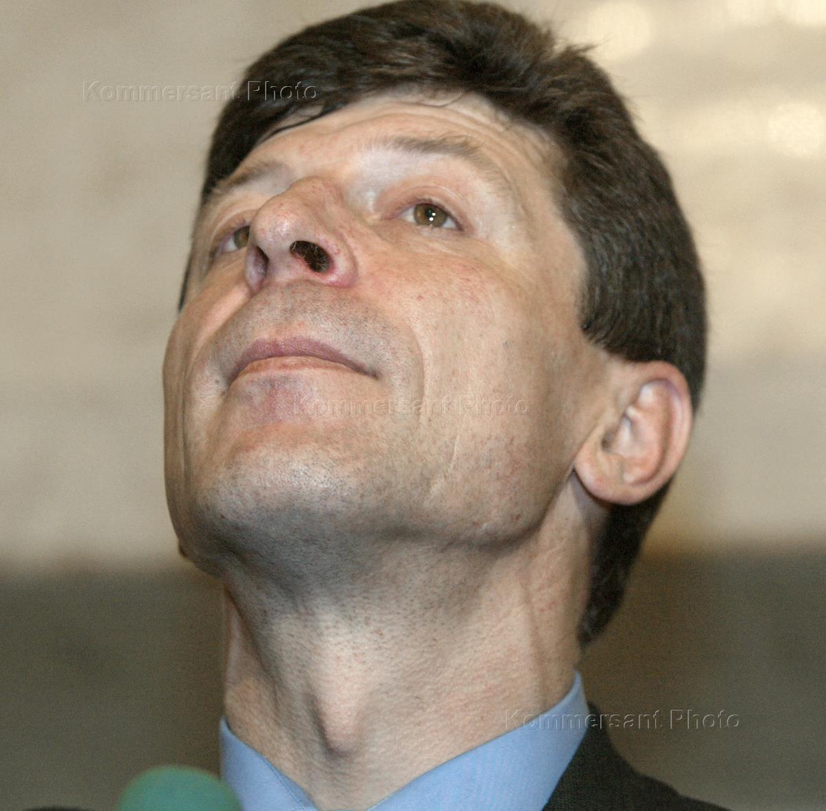 Vice speaker of the State Duma Georgy Boos (right) and Speaker Gennady Seleznev (right) take part in the parliamentary hearings of the presidential bill 'On General Principles of Local Self-Government in Russia'.
