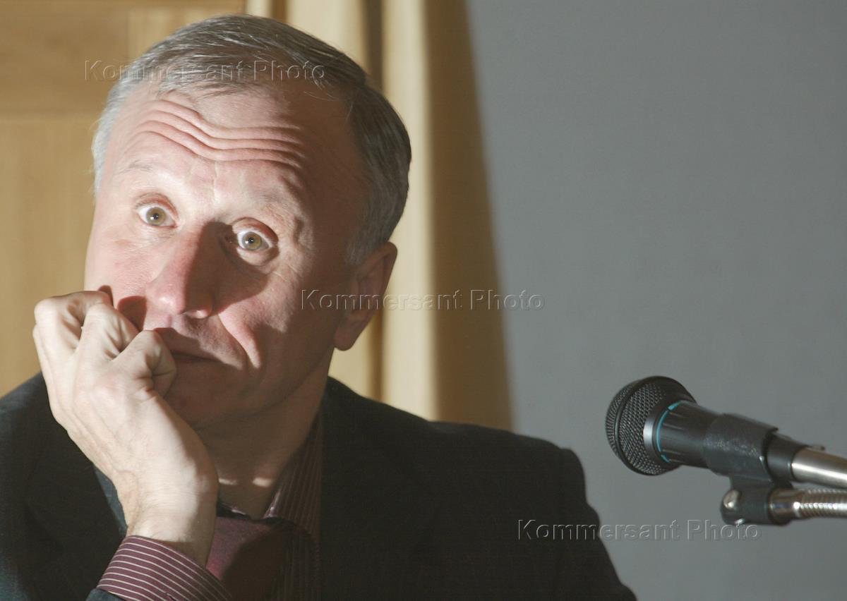 Member of the Federation Council (upper house of parliament) Gennady Burbulis of Novgorod Oblast takes part in a meeting summoned to discuss the celebration of the current Russian Constitution 10th anniversary to be held in December 2003.