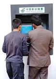 Жанровая фотография. Мужчины снимают деньги в банкомате Китиайского почтового банка.