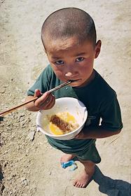 Жанровая фотография. Мальчик с тарелкой лапши.