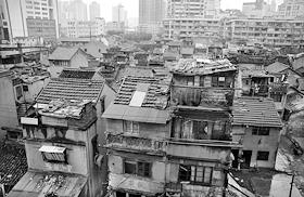 Жанровая фотография. Виды Китая. Старые разваливающиеся жилые дома в городе.