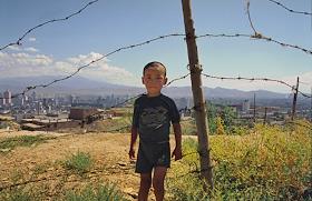 Жанровая фотография. Ребенок у стены колючей проволки.