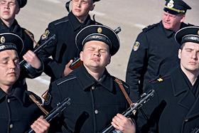 Репетиция парада ко Дню Победы - 9 мая - прошла на аэродроме "Херсонес". Заместитель командующего Черноморским флотом генерал-лейтенант Юрий Петров во время репетиции.