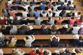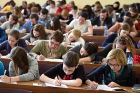 Участники глобальной образоватльной акции "Тотальный диктант-2015" на факультете журналистики в Московском Государственной университете (МГУ) имени М.В.Ломоносова.