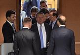 Пленарное заседание Государственной думы России. Слева направо, министры России: по связям с Открытым правительством Михаил Абызов, образования и науки Дмитрий Ливанов, экономического развития Алексей Улюкаев, энергетики Александр Новак, культуры Владимир Мединский и промышленности и торговли Денис Мантуров перед началом заседания.