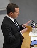 Председатель правительства России Дмитрий Медведев во время выступления на заседании Государственной думы России.