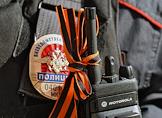 Георгиевская ленточка на рации сотрудника полиции, полученная от волонтеров во время патриотической акции "Георгиевская ленточка", посвященной 70-й годовщине победы в Великой Отечественной войне.