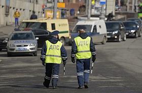 Жанровая фотография. Сотрудники ДПС на дороге в центре Москвы.