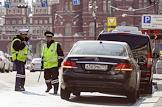 Жанровая фотография. Сотрудник ДПС на дороге в центре Москвы.