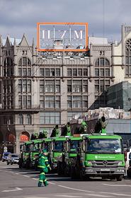 Жанровая фотография. Колонна новых автомашин "Московского паркинга" у ЦУМа в центре Москвы.