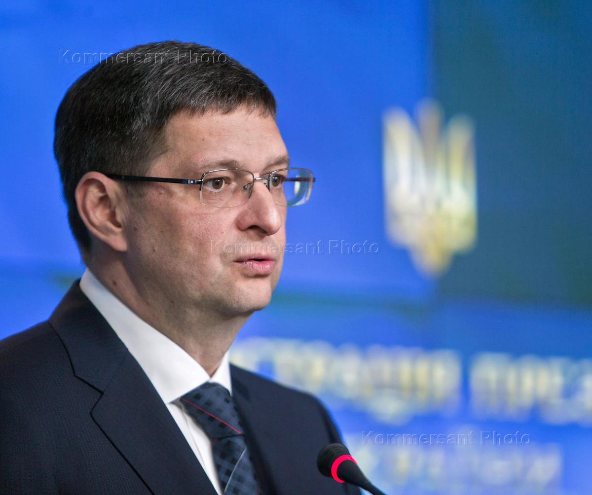 Первый заместитель главы Администрации президента Украины Виталий Ковальчук во время брифинга после встречи с представителями шахтеров, которые в среду пикетировали Администрацию Президента Украины.