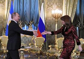 Президент Аргентины Кристина Фернандес де Киршнер (слева) и президент России Владимир Путин (справа) во время встречи.
