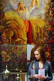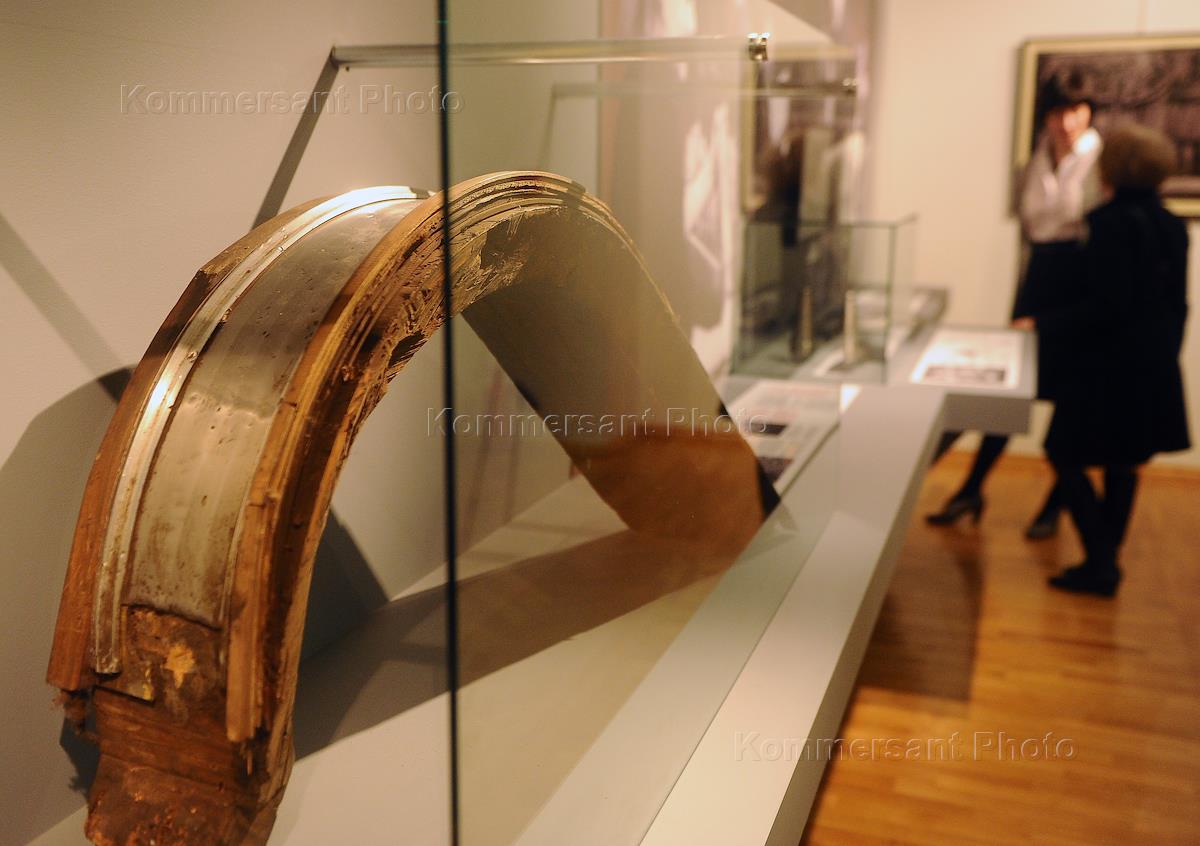 Посетительница на выставке "Метро и война" и "Искусство победителей" в Музее Декоративно-прикладных искусств.