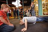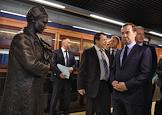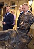 Председатель правительства России Дмитрий Медведев (справа) и основатель детского города профессий "Мастерславль" Виталий Сурвилло (второй справа) во время посещения детского города мастеров "Мастерславль".