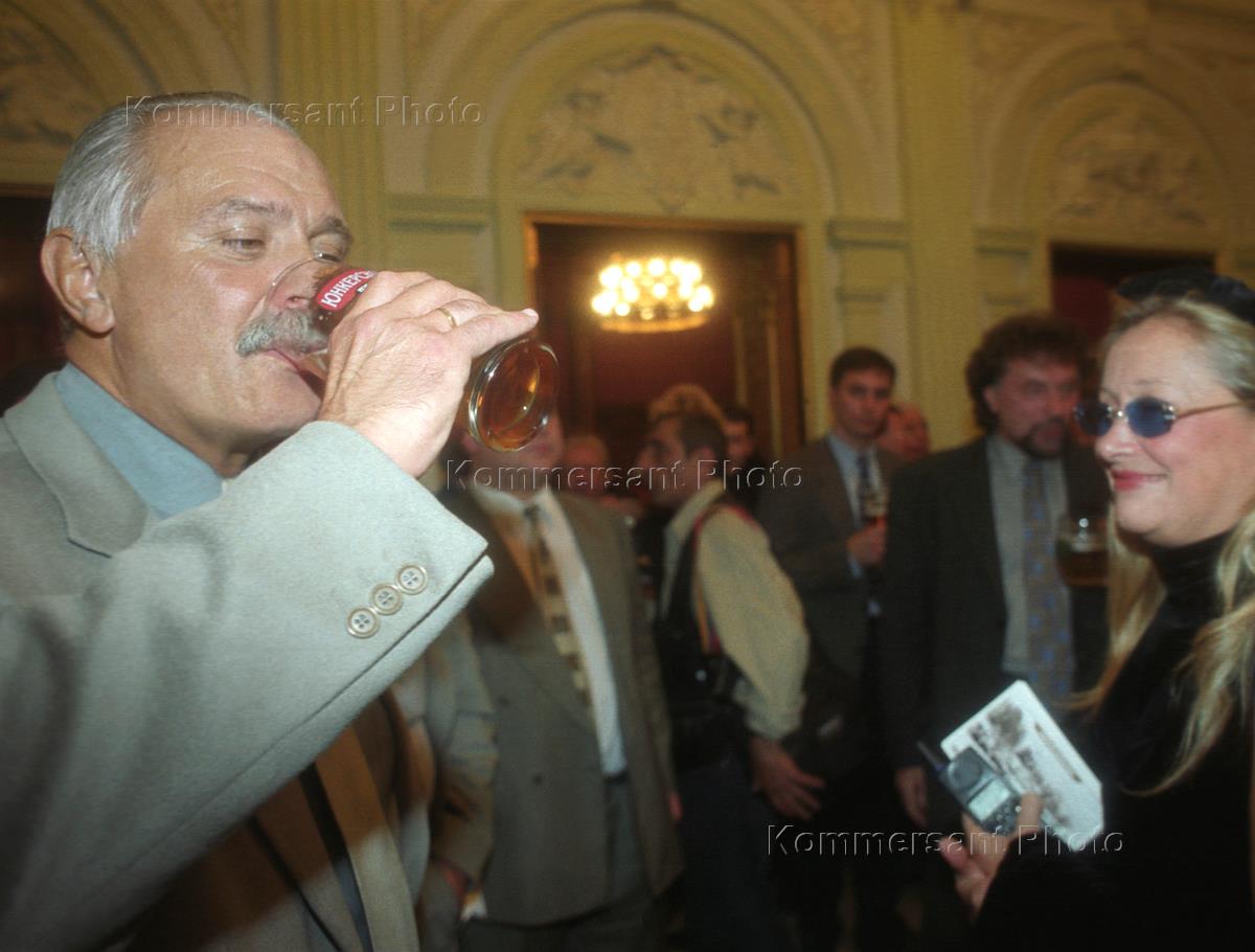Russian film director Nikita Mikhalkov enjoys a glass of beer at the Yunkerskoye beer-brand presentation held in Metropole Restaurant.