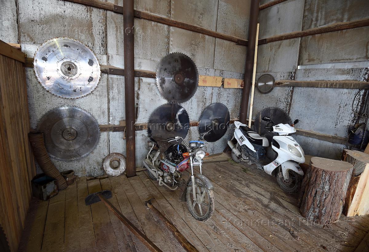 Поселок городского типа Сосьва. Административный центр Сосьвинского городского округа. Жанровая фотография. Мотоциклы в гараже.