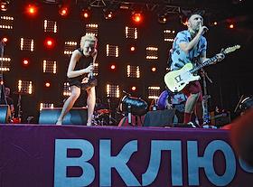 Танцор Вадим Любушкин (слева) и режиссер Валерия Гай Германика (справа) на праздновании Дня рождения телеканала "Дождь" в Stadium Live.