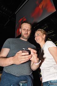 Супруга председателя партии "Партия прогресса" Алексея Навального Юлия (справа) и член бюро движения "Солидарность" Илья Яшин (слева) на праздновании Дня рождения телеканала "Дождь" в Stadium Live.