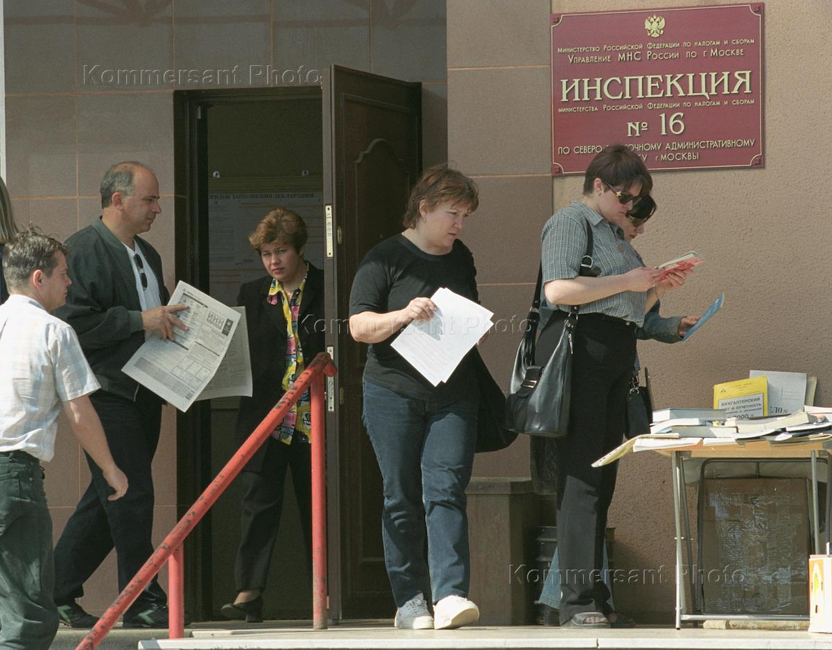 People wait in the line for their turn to visit the local tax-inspection office.
