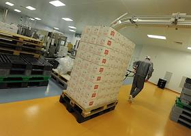 Жанровая фотография. Завод компании "Органик Фармасьютикалз" по производству зубной пасты Splat. Склад готовой продукции.