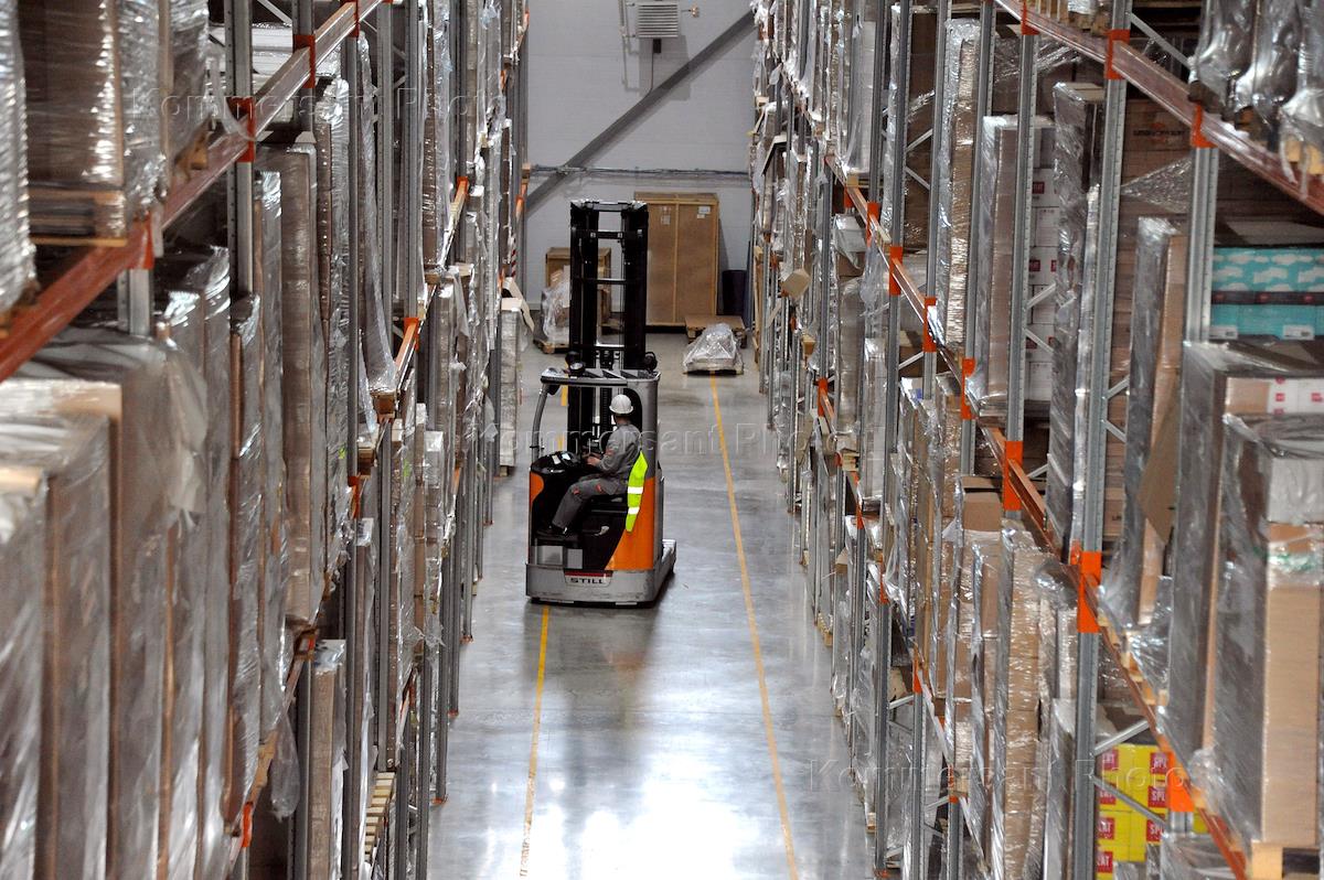 Жанровая фотография. Завод компании "Органик Фармасьютикалз" по производству зубной пасты Splat. Склад готовой продукции.
