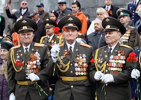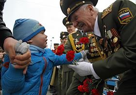 Ветераны Великой Отечественной войны на параде в честь Дня победы на Площади 1905 года.